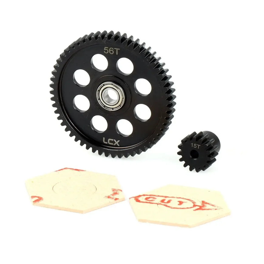 LCX Racing 1/10 RC Crawler Car Hard Steel 32P 56T Spur Gear 15T Pinion Gear for Axial RR10 Yeti 90048 Upgrades Parts Accessories